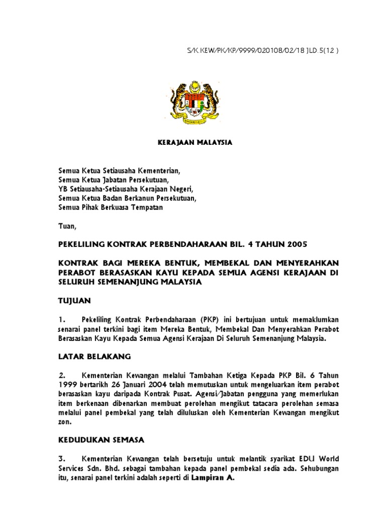 Kontrak panel perabot Sunday February 27 2022 Edit. PINDAAN PEKELILING PK 11 PUNCA KUASA PRINSIP DAN DASAR PEROLEHAN KERAJAAN. Bagi yang tiada kontrak tempoh penggantungan adalah 2 tahun.